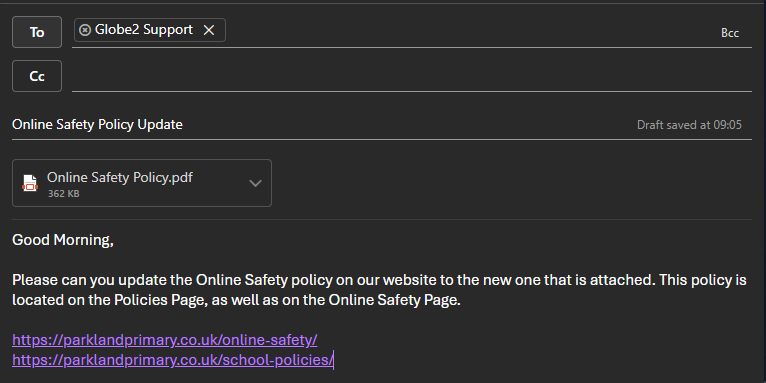 - a descriptive email subject makes it easier to identify one case from another, otherwise we have 10 cases all named ‘[school name]’ which makes it harder to prioritise workloads.